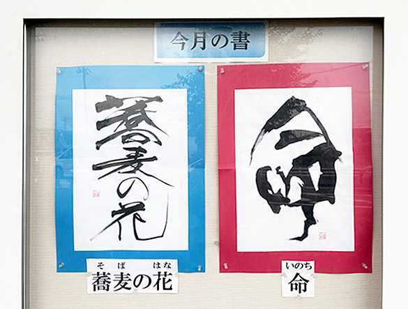 今月は、「命」、「蕎麦の花」にしました。9月1日は防災の日です。1923年9月1日に発生した関東大震災にちなんで1960年に制定されました。巨大地震、火山の噴火、豪雨など、ここ50年の間に未曾有の災害が発生し多くの犠牲が出ています。